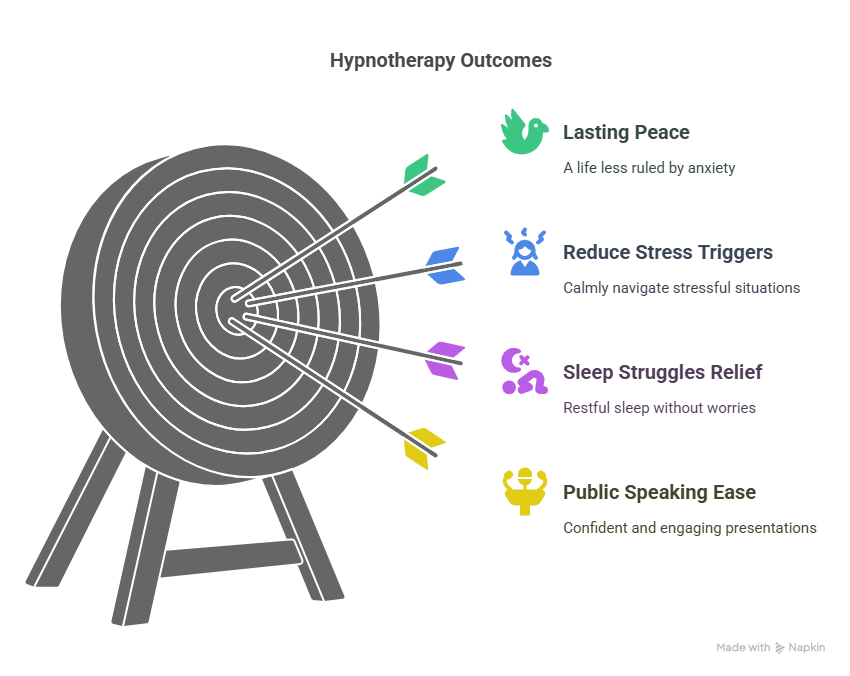 Hypnotherapy can be your key to unlocking a life less ruled by anxiety. Ready to turn that volume down? Schedule a free Strategy Call today and let’s explore how hypnotherapy can help you find lasting peace.