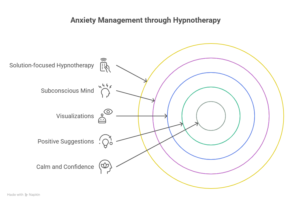 Solution-focused hypnotherapy can be your remote control. It doesn’t dwell on the “why” behind your anxiety, but on the “how” to manage it. We’ll tap into your subconscious mind, that powerful part that controls your reactions. Together, we’ll create positive suggestions and visualizations to replace anxious thoughts with feelings of calm and confidence.